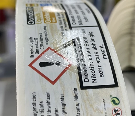 We also produce labels with selective relief varnish, e.g. labels with a warning triangle applied to the label using screen printing technology.