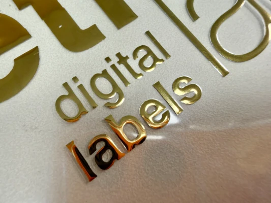 - Trykte etiketter forgylt/sølvbelagt ved hjelp av varmstempling
